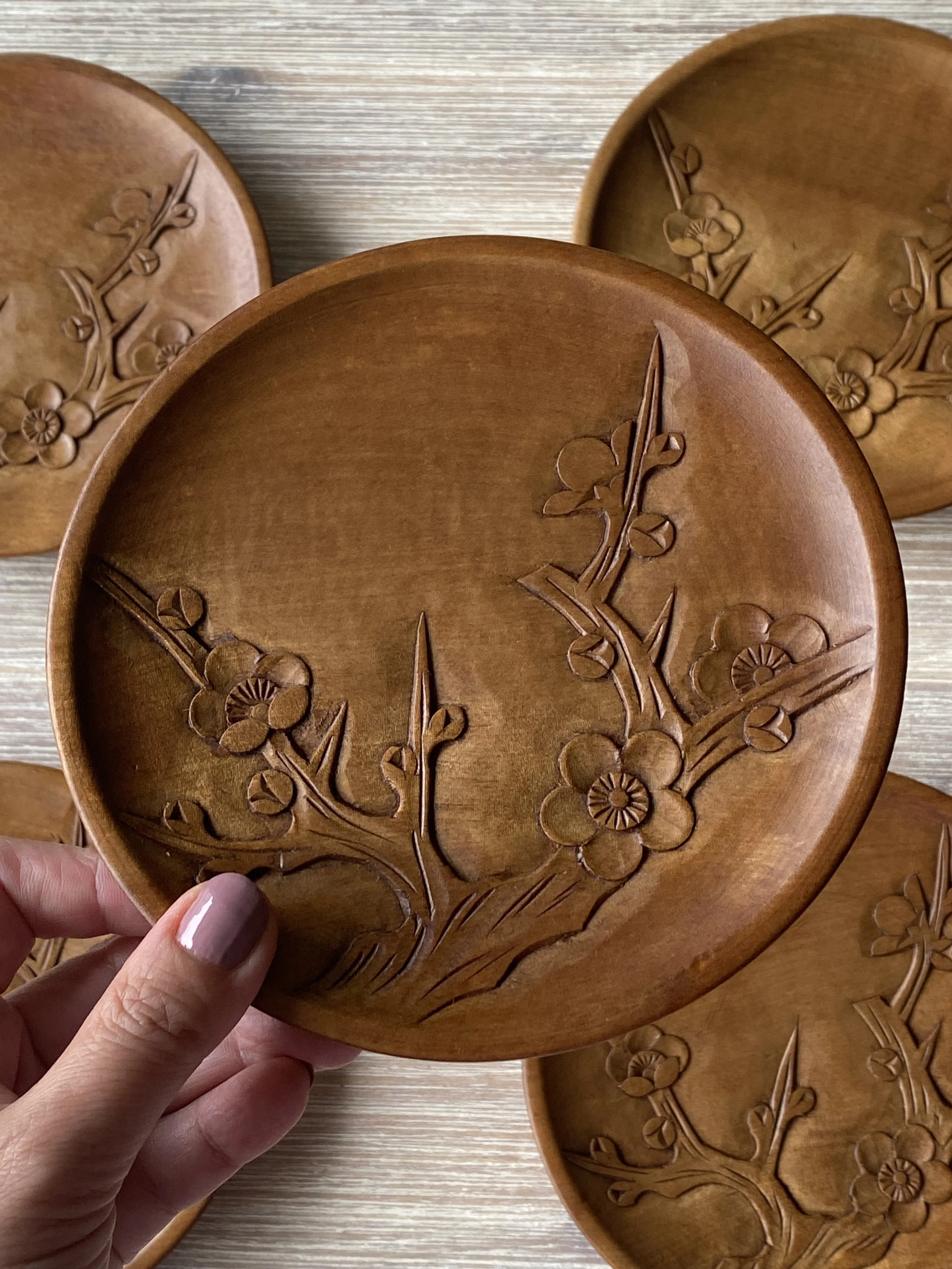 Vintage from the 1980s, each dish is individually hand-carved