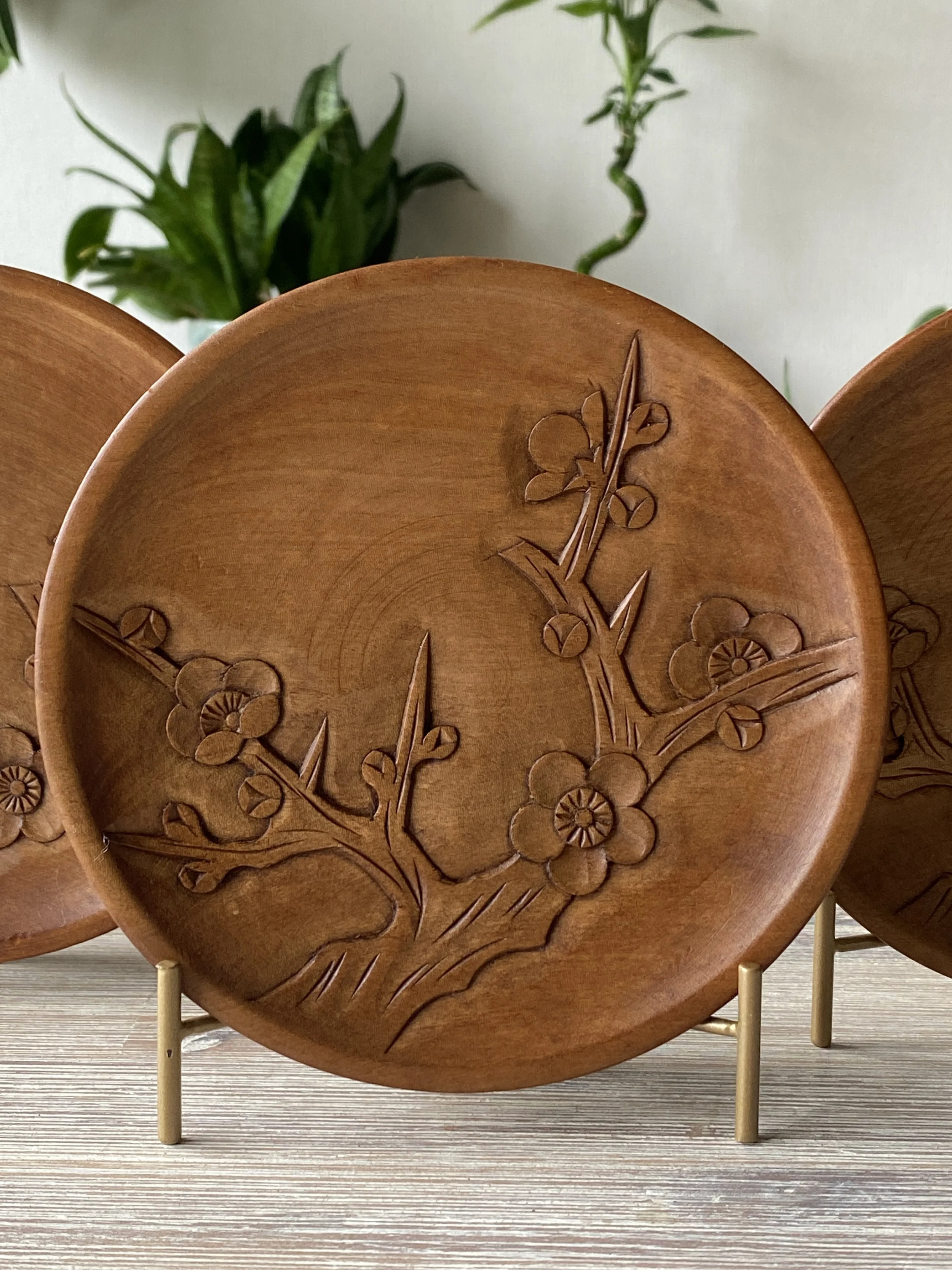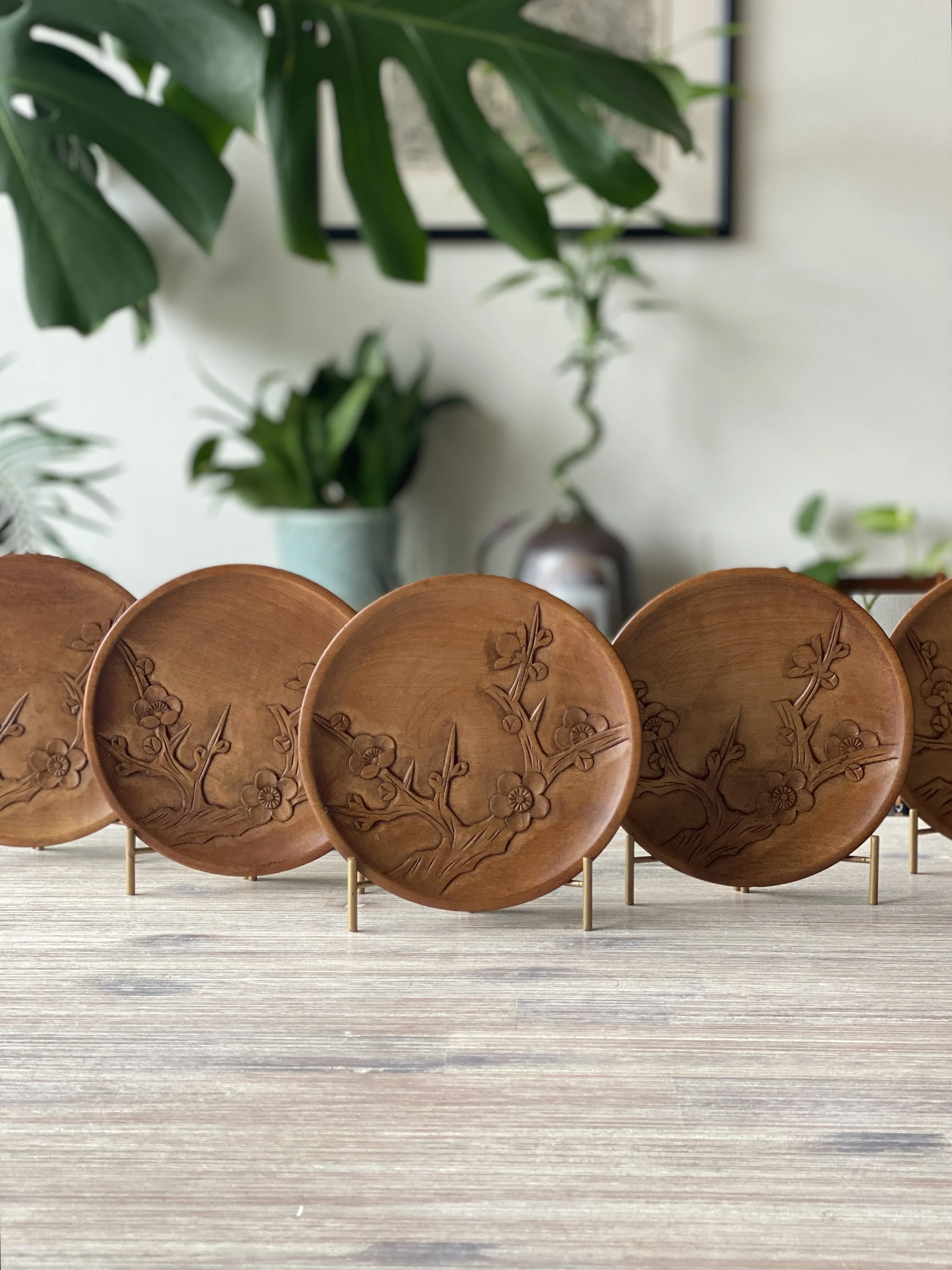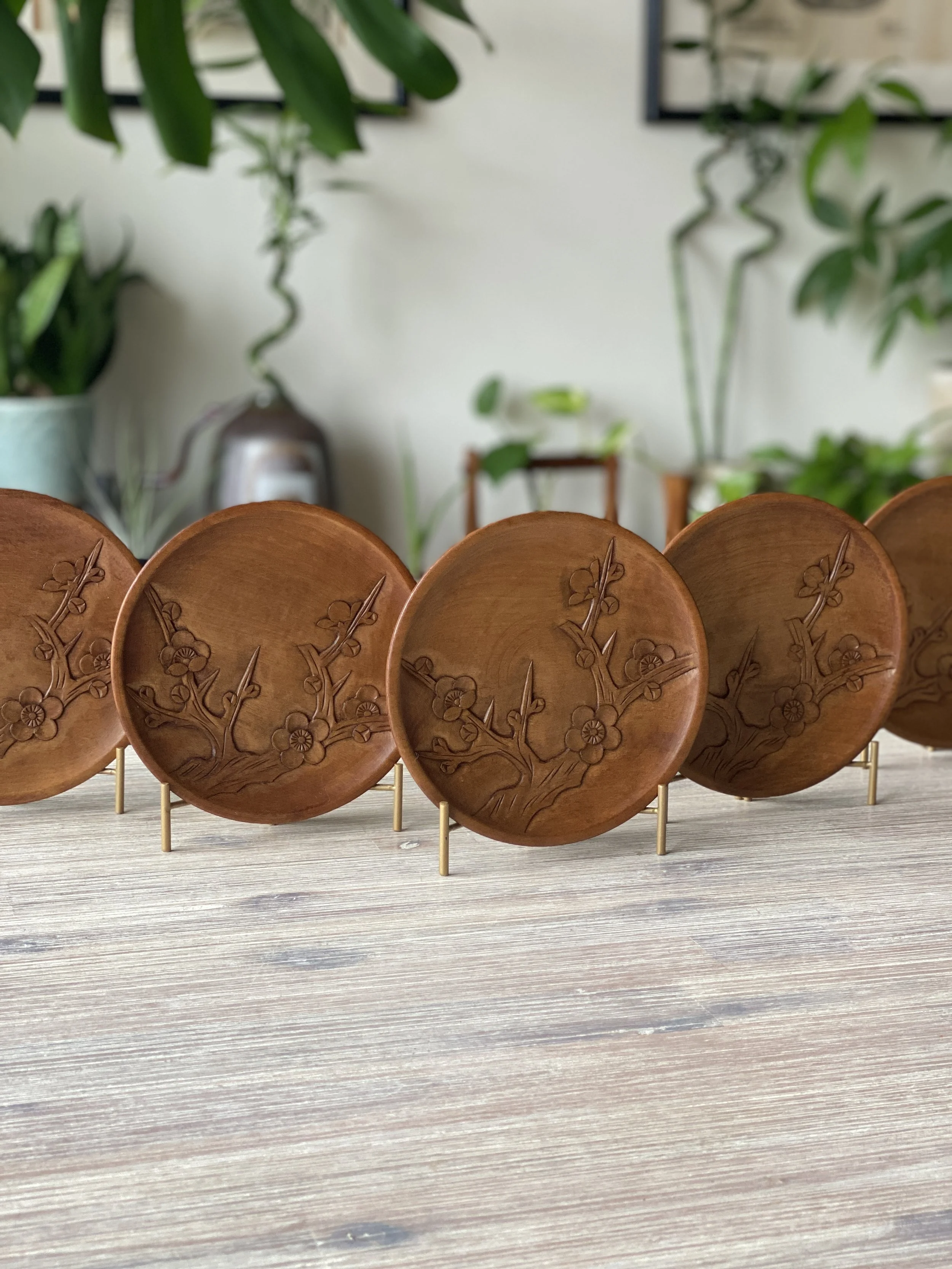 Hand-carved “kashi-zara” dishes with plum blossom motif